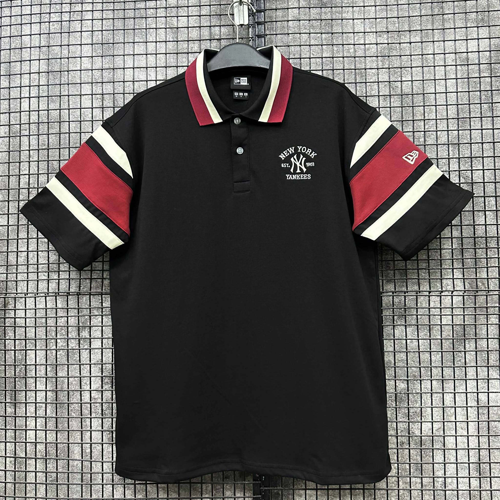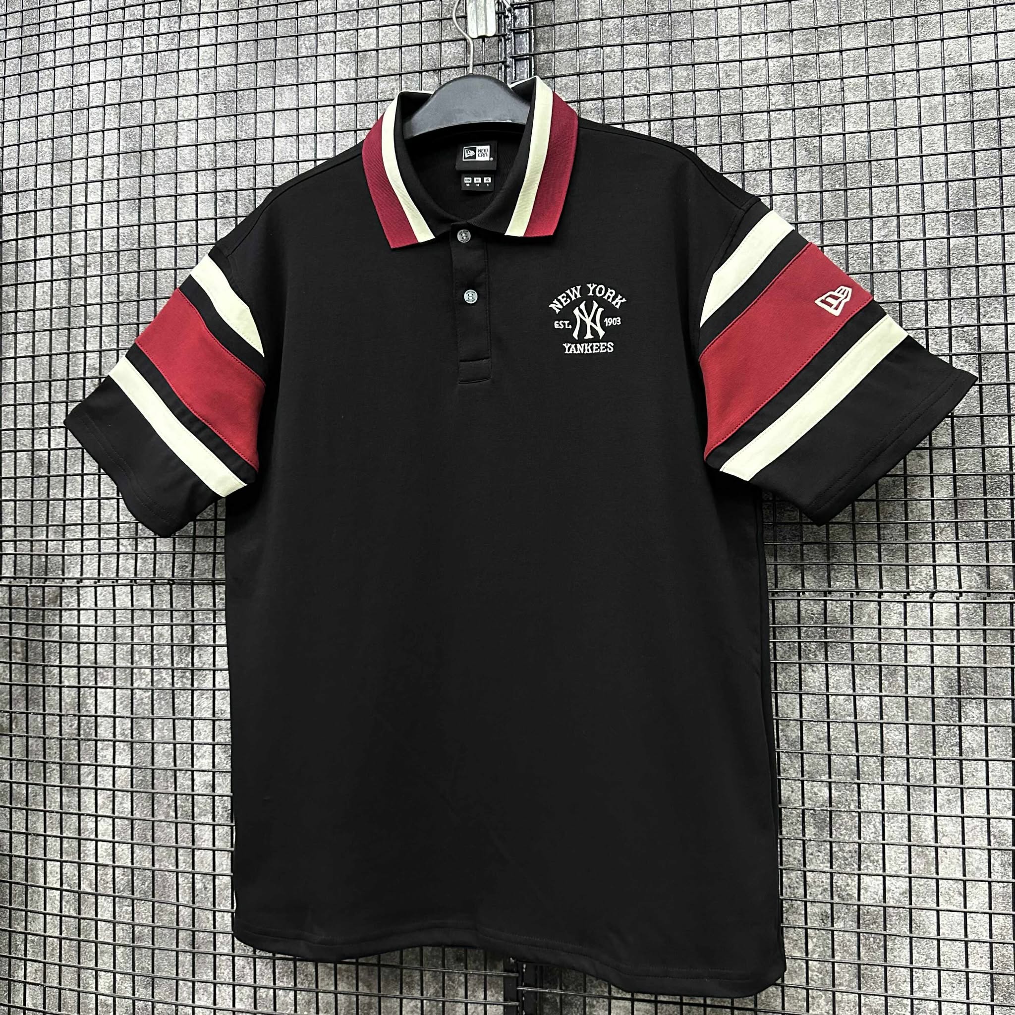 Áo Polo New Era New York Yankees Đen Sọc Tay Đỏ Trắng *15453599*